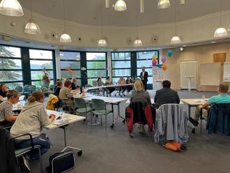 Am 22.05.2024 war es soweit, der Fachbereich Sozialplanung lud zum 2. Pflegestammtisch im Landkreis Hildburghausen ein. Insgesamt 21 Teilnehmer aus den stationären Einrichtungen der Pflege, der Seniorenzentren und Seniorenwohnheime sowie der ambulanten Pflegedienste trafen sich im großen Sitzungssaal des Landratsamtes zum gemeinsamen Austausch mit Vertretern der Kreisverwaltung.