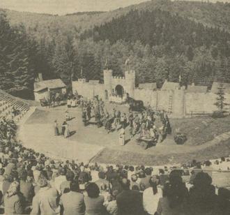 17.06.1974 Steinbach-Langenbach. Seit Beginn der 18. Spielzeit des Meininger Theaters im Naturtheater wurden bereits 4000 Besucher bei den bisher 6 Vorstellungen gezählt. Das „Theater im Grünen“ erwartet in dieser Saison seinen millionsten Besucher.