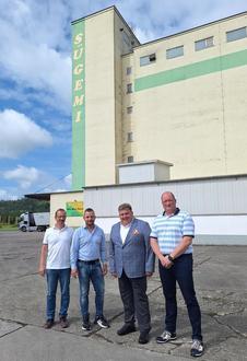 Aus diesem Grund suchte der Landrat, gemeinsam mit Wirtschaftsförderer Robin Fleck, das Gespräch mit den Geschäftsführern. Die angedachte Vollsperrung der Bundesstraße hatte für großes Entsetzen gesorgt. „Auch, wenn hierbei schlussendlich ein Kompromiss gefunden werden konnte, sollte in Zukunft bei großangelegten Straßensperrungen frühzeitiger an die Landwirtschaft gedacht werden“, gibt Jens Meinunger zu bedenken. „Gerade im Sommer, wo der Landwirt den Gewinn seiner harten Arbeit des ganzen Jahres vergolden möchte, dürfen ihn keine Steine in den Weg gelegt werden“, führt er weiter aus. Die Sügemi ist ein wichtiger regionaler Abnehmer und Verarbeiter von Futtermitteln und Getreide und folglich auf gut funktionierende Lieferketten vor Ort angewiesen. Jährlich werden bis zu 40.000 t Mischfutter von 63 Mitarbeitern hergestellt und vermarktet - über den eigenen Fuhrpark direkt zum Großabnehmer, in den „Grünen Märkten“ des Unternehmens oder an weitere 60 Händler in der Umgebung. „Neben unserer Hauptproduktion besitzen wir seit 2017 eine eigene Ölpresse, in der wir unser eigenes Rapsöl herstellen, betreiben eine Tankstelle und vermieten Lagermöglichkeiten, die wir aktuell nicht selbst nutzen“, erklärt René Höhborn. Das Unternehmen ist bereits seit 50 Jahren im Geschäft und schaffte den Sprung aus der Verstaatlichung nach der Wende in eine private Gesellschaft, als sich 5 Mitarbeiter aus der Belegschaft fanden, die Firmengeschichte weiterzuschreiben.