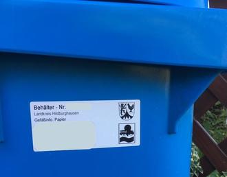 Deshalb wird vom 04.09. bis 15.09.2023 noch einmal eine Nachrüstung der blauen Tonnen in den Ortschaften unseres Landkreises durchgeführt. Wir bitten die Haushalte, die noch keinen Aufkleber mit dem Landkreiswappen (siehe Foto) auf der blauen Tonne haben, die Tonne in diesem Zeitraum nochmal an der Grundstücksgrenze bereitzustellen. Ein Mitarbeiter der vom Entsorger Fa. Städtereinigung Ernst GmbH & Co. KG beauftragten Firma wird die Nacharbeiten vor Ort durchführen.