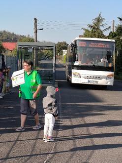 In Veilsdorf lernen die Erstklässler, was passieren kann, wenn man vor dem Bus über die Straße geht.