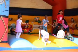 Das Highlight des Festes lieferte jedoch der Kreissportbund. Die Hüpfburg wurde von den Kindern bis zur allerletzten Minute in Beschlag genommen. Auch das Spielmobil und das Soccerdarts wurden rege genutzt.
