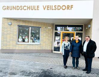 Schulbesuch in der Grundschule Veilsdorf v.l.n.r. stellvertretende Schulleitung Frau Meyer, Schulleitung Frau Reinfelder und Landrat Herr Gregor