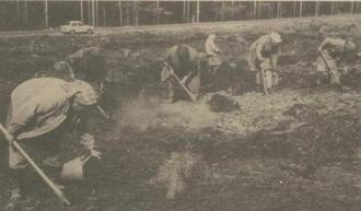 Brigade der Oberförsterei Trostadt bei Aufforstungsarbeiten