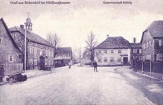 27.04.1924 „Hildburghausen. 26. April. Ausgemeindung. Heute nachmittag wird der Thüringer Minister für Inneres und Wirtschaft, Herr Dr. Sattler, mit den nach hier eingemeindeten Ortschaften über die Rückgängigmachung der Eingemeindungen verhandeln. Es handelt sich um die Orte Häselrieth, Wallrabs und Birkenfeld.“