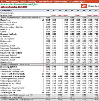 Auch in diesem Jahr bieten der Landkreis Hildburghausen und die WerraBus GmbH anlässlich des 52. GutsMuths-Rennsteiglaufes am 17.05.2025 wieder einen erweiterten Fahrplan für die An- und Abreise an.