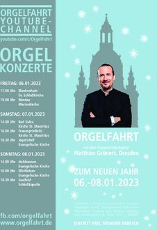 Matthias Grünert hat sicherlich ein Feuerwerk aus Noten dabei. Barocker Glanz, Polyphonie, große Orgelwerke und vielleicht auch innige Töne. Lassen Sie sich von der Farbenpracht des Notenfeuerwerkes überraschen.