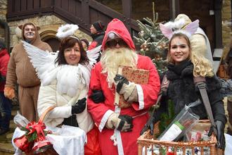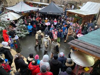 Leuchtende Kinderaugen, als der Weihnachtsmann und die beiden wunderschönen Engel Süßigkeiten verteilten. Mit Schild und Schwert zeigte der Thüringer Ritterbund seine Künste, von den kleinsten Gästen temperamentvoll angefeuert. Wer einen Blick in den tiefen Folterkeller werfen konnte, staunte nicht wenig über gruselige Märchen.
