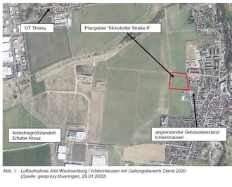 Die Gemeinde Amt Wachsenburg hat den Bebauungsplan „Molsdorfer Straße II“ in dem beschleunigten Verfahren nach § 13 b in der bis zum Ablauf des 31.12.2023 geltenden Fassung aufgestellt. Der Bebauungsplan wurde am 19.01.2022 durch die Rechtsaufsichtsbehörde genehmigt.