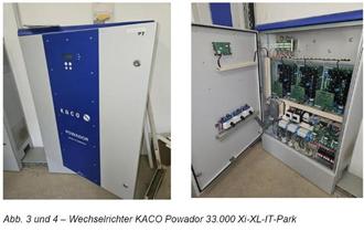 Die Gemeinde Amt Wachsenburg bietet, aufgrund einer Dachsanierung, eine am 30.06.2010 errichtete PV-Anlage zum Ankauf an. Es handelt sich um eine PV-Anlage besteht aus 123 Stück der Module Bosch c-Si M60 225 Wp (Abb. 2) und einem Wechselrichter KACO Powador 33.000 Xi-XL-IT-Park (Abb. 3 und 4) mit einer Gesamtleistung von 33,075 kWp. Die Module waren auf Trageschienengestellen montiert.