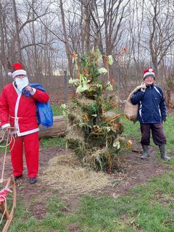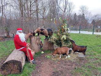 Ein besonderes Highlight für die Besucher und Mitglieder des Klosterguts war der Besuch des Weihnachtsmanns, der zunächst mit einer Schwalbe und einem Schlitten erschien. Er verteilte Obst und Süßigkeiten an die Anwesenden. Kurz darauf überraschte der Weihnachtsmann erneut - dieses Mal mit vielen PS unter dem Mantel auf einem Fahrrad. In seinem Sack hatte er weitere Leckereien speziell für die Ziegen mitgebracht.