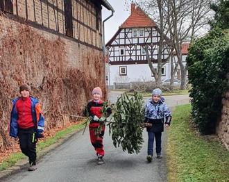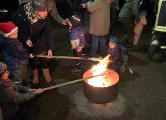 Das gemeinschaftliche Verbrennen der Weihnachtsbäume nennt man ja neudeutsch Knutfest. Schön, dass es in Sülzenbrücken bei der traditionellen Bezeichnung „Neujahrsfeuer“ geblieben ist. So sammelte die Jugendfeuerwehr am Sonnabend, dem 14. Januar im gesamten Dorf die ausgedienten Christbäume ein, dabei ganz vorn dran die jüngsten „Feuerwehrmänner und -frauen“. Pünktlich abends um fünf Uhr loderte in den Witten das Neujahrsfeuer in den Nachthimmel. Gleich nebenan, am Feuerwehrgerätehaus brannte dagegen der Rost. Die Kinder konnten sich an einer Feuerschale Stockbrot braten. Gegen das kalte Wetter halfen den Erwachsenen Glühwein und andere geistige Getränke, die dann zusammen mit Bratwurst und Brätel windgeschützt und gut gelaunt im Gerätehaus verzehrt werden konnten. Rege genutzt wurde von den Kindern auch das vorhandene Tisch-Fußballspiel.