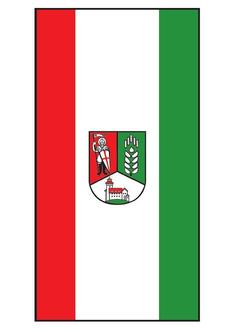 Die Flagge der Gemeinde Amt Wachsenburg ist weiß mit einer roten und einer grünen Flanke (1:2:1) und zeigt das Gemeindewappen.