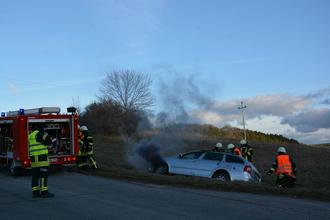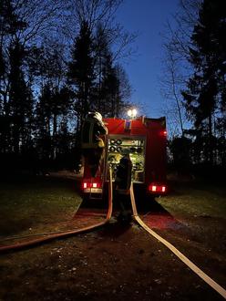 Für die Kameradinnen und Kameraden ging es dann nach Bittstädt. Hier fanden die Einsatzkräfte zunächst einen Verkehrsunfall vor. Schnell wurde klar, dass dieser nur die Folge eines anderen Ereignisses war. Somit lies die Einsatzleitung Kräfte auf den Turnerplatz im Haidenholz verlegen. Es lagen Informationen über eine mögliche Brandausbreitung vor.