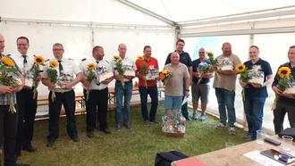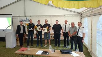 Im weiteren Verlauf der Veranstaltung wurden mehrere Kameradinnen und Kameraden für ihren langjährigen Dienst in der Feuerwehr mit Ehrenzeichen des Thüringer Innenministers ausgezeichnet - für 10, 25 und 40 Jahre treue Pflichterfüllung. Die Ehrungen wurden gemeinsam von Kreisbrandinspektor Sebastian Arnold, Kreisbrandmeister Nord René Schmidt sowie dem Vertreter des Kreisfeuerwehrverbandes, Helmut Schiel, durchgeführt.
