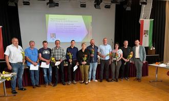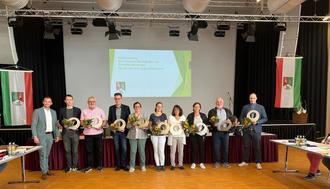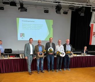 Ausscheidende Gemeinderäte und Ortsteilbürgermeister wurden feierlich mit Blumen und Präsenten verabschiedet. Der Bürgermeister dankte herzlich für die Arbeit in der letzten Legislaturperiode. Besonders hervorgehoben wurde Wolfgang Münster von Bürger Aktiv, der unglaubliche 47 Jahre im Gemeinderat tätig war. Auch die berufenen Bürger der Ausschüsse wurden gebührend verabschiedet.