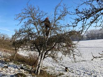 Professioneller Obstbaumschnitt auf einer Streuobstwiese bei Griesheim (Foto: M. Scheller)