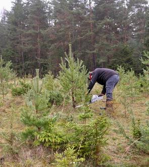 Aufgewachsene Kiefern und Fichten werden auf einem wertvollen Trockenrasen entnommen. Einzelne Gehölze verbleiben auf der Fläche. (Foto: N. Heinrich)