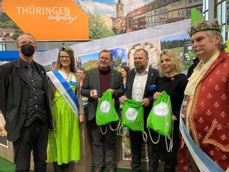 Thüringen ist in jedem Falle eine Reise wert - und der Thüringer Bogen ganz besonders. Das wurde zur Grünen Woche in Berlin wieder deutlich. Ilm-Kreis und Landkreis Gotha präsentierten sich in diesem Jahr gemeinsam an einem Stand der Internationalen Messe für Ernährung, Landwirtschaft und Gartenbau. Mit von der Partie war auch Sängerin Katharina Herz, die in ihrer Rolle als Botschafterin des Thüringer Bogens nicht nur auf der Bühne, sondern auch in persönlichen Gesprächen für die Region zwischen Ilm-Kreis und Gotha warb.
