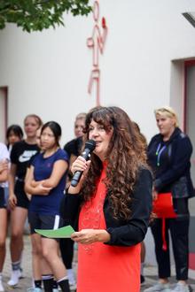Enders betonte in ihrer Ansprache: „Mit dem ‚Hochsprung mit Musik‘ hat Hubertus Triebel etwas Einzigartiges geschaffen. Diese Veranstaltung war weit mehr als ein Sportwettbewerb - sie wurde zu einem kulturellen Höhepunkt. Weltmeister, Olympiasiegerinnen und Spitzenathleten aus vielen Nationen kamen nach Arnstadt, es wurden Hallenweltrekorde aufgestellt. Sport und Musik verbanden sich zu einem Erlebnis, das weit über die Region hinausstrahlte. Diese Halle trägt nun dauerhaft seinen Namen und sein Wirken. Dieses Andenken führen wir weiter.“