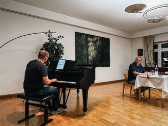Andreas Groß am Flügel und André Kudernatsch zur musikalischen Lesung in der Musikschule Ilmenau