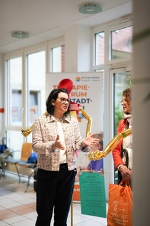 Die Eröffnung der Wanderausstellung „Versteh mich doch! Demenz Normal“ im Foyer der Ilm-Kreis-Kliniken Arnstadt bildete am Donnerstagvormittag einen besonderen Höhepunkt der Woche der Demenz. Zentrales Element der Ausstellung sind sieben farbenfrohe Puppen mit goldenen Händen, die jeweils einen realen Menschen mit Demenz verkörpern - mit eigener Geschichte, individuellen Stärken und besonderen Eigenheiten. Sie machen eindrücklich deutlich: Hinter jeder Diagnose steht ein Mensch mit Erinnerungen, Persönlichkeit und Würde. Konzipiert wurde die Ausstellung von Gerontologin Anja Schollmeyer. Ihr Anliegen ist es, Berührungsängste abzubauen, Perspektiven zu verändern und zu zeigen, dass Demenz mitten in unserer Gesellschaft stattfindet - nicht am Rand. Im Anschluss an die Vernissage hielt die Expertin einen Fachvortrag, in dem sie die Inhalte und Ziele der Ausstellung vertiefte und über den Wert von Teilhabe, empathischer Kommunikation und einer respektvollen Haltung sprach.