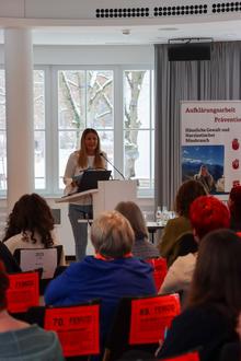 Wie wichtig die Unterstützung von Gesundheitsfachkräften für Betroffene von häuslicher Gewalt ist, machte Angelika May vom SIGNAL e. V. aus Berlin deutlich. Die pensionierte Ärztin stellte Handlungsleitlinien vor, wie Mitarbeiter in Notaufnahmen Kontakt zu Betroffenen aufbauen und sie zum Reden ermuntern können, um Hilfe anzubieten. „Die Bereitschaft gefragt zu werden, ist höher als die Bereitschaft zu fragen“, appellierte sie eindringlich. Der Verein hat Handlungsanweisungen entwickelt, wie Ärzte, Pflegekräfte und auch Hebammen reagieren und eine vertrauensvolle Situation im Umgang mit Betroffenen entwickeln können. Sie warb um Verständnis und sensibilisierte für einen Perspektivwechsel: „Stellen Sie sich vor, Sie müssten über etwas sprechen, das Sie mit tiefer Scham erfüllt. Würden Sie es tun?“