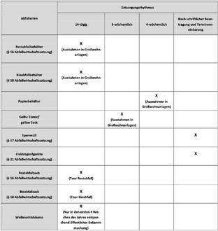 Häufigkeit und Zeitpunkt der Abfallentsorgung