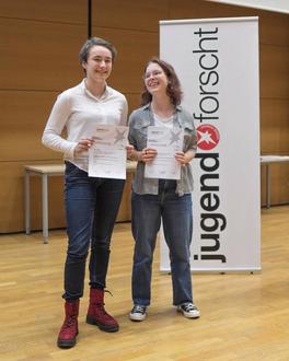 Leoni, Hanna (v.l.) und Silje (nicht im Bild) gewannen den Sonderpreis der Landrätin beim Wettbewerb "Jugend forscht"