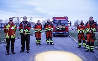 v.l.n.r. Patrick Langbein (Feuerwehr Stadtilm), Sebastian Arnold (KBI) und vier Kameraden der Rettungshundestaffel.