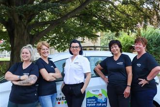 Die Agathe-Fachberaterinnen Sabrina Haase, Antje Hübel, Simone Härtelt, Doreen Klauder (v. l.) und Projektkoordinatorin Christiane Herrmann (Mitte) helfen gern weiter.