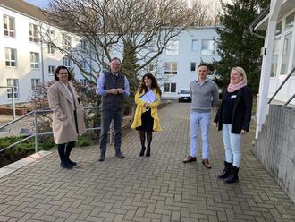 Herzliche Begrüßung im Seniorenwohnpark Dorotheenthal: v. r. n. l. Bereichsleiterin Pflege Mandy Decker, Vorstand Alexander Münzel, Landrätin Petra Enders, Heimleiter Frank Bücher und Christiane Herrmann, Beratungsfachkraft Pflegeinformation im Landratsamt Ilm-Kreis