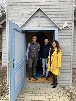 Die kleine Holzkirche ist etwas Besonderes. v. r. n. l. Landrätin Petra Enders, Vorstand Alexander Münzel und Heimleiter Frank Bücher
