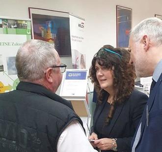 Geschäftsführer Dominik Gerber und Anne Bohrmann waren vom Stammsitz angereist, um den Gästen die Firmengruppe und die Produkte vorzustellen. Stolz sind sie auf ihr Team aus ca. 60 Mitarbeiter aus 17 Nationen. Die sechs Mitarbeiter in Wildenspring, denen die Produktion der Mikroskope obliegt, zeichnen sich durch herausragende qualitative Arbeit und eine tiefe Verbundenheit und Loyalität aus, wie Geschäftsführer Dominik Gerber betonte.