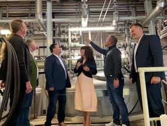 Ortsteilbürgermeister Andreas Utnehmer, Eberhard Kahl, Ilmenaus Oberbürgermeister Dr. Daniel Schultheiß und Landrätin Petra Enders zum Unternehmensbesuch bei der Eberhardt & Kahl GbR in Gehren