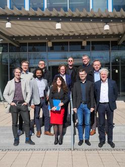 Vertreterinnen und Vertreter aus Politik, Wirtschaft und Wissenschaft vor dem TGZ Ilmenau.