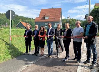 „Ein Radweg rund um den Thüringer Wald - diesem ambitionierten Projekt sind wir heute einen weiteren wichtigen Schritt nähergekommen“, so Landrätin Petra Enders am 13. September 2023 zur Teileinweihung der Waldrandroute im Ilm-Kreis in Gräfenroda-Dörrberg. „Ein großer Kraftakt, den wir ohne Unterstützung der beteiligten Gemeinden nicht geschafft hätten“, sagt Landrätin Petra Enders und bedankt sich herzlich bei Ilmenau mit seinen Ortsteilen Pennewitz, Jesuborn, Gehren und Langewiesen, aber auch bei der Gemeinde Elgersburg und der Gemeinde Geratal mit Geraberg, Geschwenda, Gräfenroda und Frankenhain.
