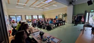 Am 22.09.2023 trafen sich 44 Schulfunktionäre von Schulen aus dem Ilm-Kreis, darunter Lehrer, Sonderpädagogen, Schulsozialarbeiter und Elternsprecher im Schüler-Freizeit-Zentrum Ilmenau, um sich über Hilfs- und Unterstützungsmöglichkeiten im täglichen Umgang mit psychisch belasteten und schwierigen Kindern und Jugendlichen auszutauschen. Das Team der Gesundheitsförderung des Gesundheitsamtes Ilm-Kreis möchte (unter vielem anderem) die Lehrer im Umgang mit Schülern und Eltern unterstützen und wird durch das vom Land finanziell geförderte Programm „Solidarisches Zusammenleben der Generationen“ (LSZ) regelmäßig stattfindende Seminare organisieren. Neben einem sehr instruktiven Vortrag zum Thema „Grenzüberschreitendes Verhalten im Schulalltag“, für den Herr Dr. Med. Ekkehart Englert, Chefarzt der Kinder- und Jungendpsychiatrie im Heliosklinikum Erfurt gewonnen werden konnte und einer im Anschluss stattfindenden Fragerunde, bot auch der „Markt der Möglichkeiten“ vielerlei Informationsangebote. So konnte eine Vernetzung mit Referenten des Weißen Rings, der AOK-Schulberatung, der th.inka Ilm-Kreis, des Kinder- und Jugendschutzzentrum „Baumhaus“, des Schulverwaltungsamts und der Suchtberatungsstelle Marienstift stattfinden. Neben der Versorgung des leiblichen Wohls, bot das Yogastudium Shoshan aus Arnstadt die Möglichkeit sowohl Körper als auch Geist zu entspannen und zu stärken.