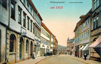 Auch in der Unteren Marktstraße befand sich früher in fast jedem Haus ein Geschäft bzw. eine Gaststätte. Zu den bekanntesten Lokalen zählten seinerzeit das Hotel "Eskimo" und das "Cafe Lammert" sowie an Geschäften das der Fa. Nordmeyer, das Modehaus "Krohm", das Feinkostgeschäft "Büchner" und die "Kreuzdrogerie" Marbach.