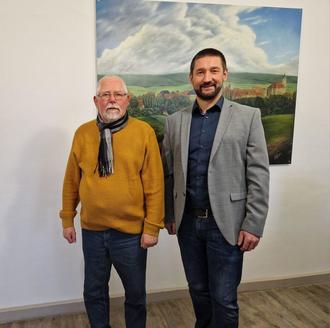 Reinhard Haschlar vom Theaterverein Hildburghausen e.V. und Bürgermeister Patrick Hammerschmidt