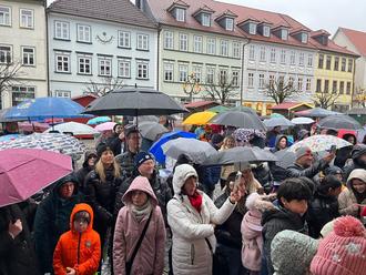 Trotz des nassen Wetters haben sich viele Kinder und Eltern zum Weihnachtsmarkt auf dem Hildburghäuser Marktplatz am 07.12.2024 getroffen, um die Kinder der Kindergärten aus Hildburghausen singen zu hören und zu sehen. Im Anschluss kam der Weihnachtsmann, um die kleinen Einwohner der Stadt zu beschenken.
