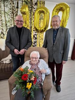 Am 20. Dezember 2024 gratulierten der Beigeordnete Burkhard Knittel und der 1. Beigeordnete des Landkreises Dirk Lindner Frau Waltraud Kallenbach zu ihrem 100. Geburtstag und übermittelten ihr die herzlichsten Glückwünsche im Namen von Stadt und Landkreis Hildburghausen.