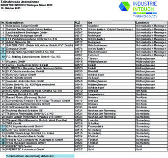 Im Jubiläumsjahr von INDUSTRIE INTOUCH präsentieren sich wieder Industrieunternehmen aus einem breiten Branchenspektrum. Für den Besucher vor Ort die ideale Gelegenheit, Marktführer und Hidden Champions direkt vor der eigenen Haustür kennenzulernen. Die Teilnehmer erhalten exklusive Einblicke hinter die Kulissen der Unternehmen und können modernste Produktionsverfahren, Technologien und innovativen Produkte hautnah und live erleben. Zum zehnten Mal können sich die Besucher davon überzeugen, wie innovativ und zukunftsfähig die Unternehmen in THÜRINGENS SÜDEN® aufgestellt sind.