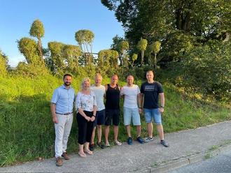 Bürgermeister Patrick Hammerschmidt, der neue Ortschaftsrat Janett Liebermann, Silvio Hanke, Steffen Florschütz, Michael Frank und Ortsteilbürgermeister Matthias Oppel