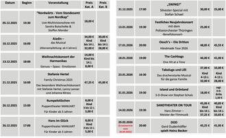 | Info & Verkauf Touristinformation, Tel. 03685/774184, Internet: www.stadttheater-hildburghausen.de sowie über www.ticketshop-thueringen.de, www.eventim.de und www.reservix.de |