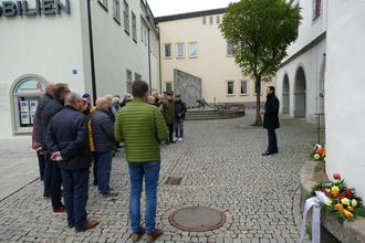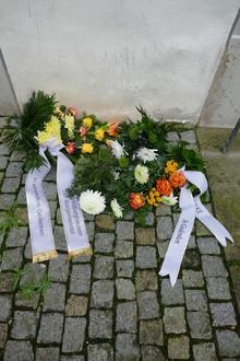 An der Gedenktafel am historischen Rathaus und in der Gerbergasse wurden Gebinde niedergelegt.