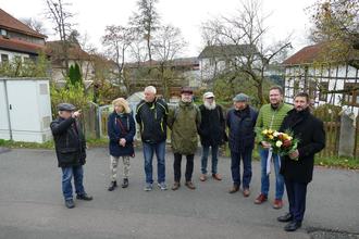 Bürgermeister Patrick Hammerschmidt, Pfarrer Andreas Wucher, Damen und Herren Stadträte sowie Vertreter der Linken Fraktion und Bürgerinnen und Bürger haben in einer Gedenkminute am 9.11.23 an die Opfer aus der Reichspogromnacht erinnert.