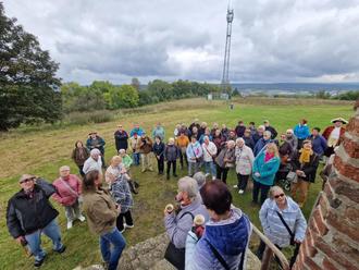 Begleitet vom Bürgermeister und dem Theresienpaar startete die Fahrt mit dem Ziel: Bismarckturm. Oben angekommen erwartete die Fahrgäste das liebevoll zurecht gemacht Turmcafé von Danny Brohm, der zu Kaffee und selbstgebackenem Kuchen einlud. Als weiteres Highlight war auch Michael Römhild auf den Berg gekommen. Er hielt einen kurzen aber sehr spannenden Vortrag zur Entstehung und Geschichte unseres Turmes.
