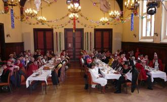 Ab 14.00 Uhr trafen sich in der Georgenhalle des Fachkrankenhauses ca. 100 Senioren unserer Stadt. Überwiegend aufwendig kostümiert, erlebten sie ein fast dreistündiges unterhaltsames karnevalistisches Programm, welches überwiegend vom HCV dargeboten und durch dazwischenliegende Tanzrunden unterbrochen wurde. Zum Erfolg der Veranstaltung trug auch die gemeinsam vom HCV und dem Seniorenbeirat hervorragend organisierte Versorgung der Veranstaltungsbesucher bei.