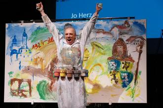 Action-Hand Painter Jo Herz brachte die Geschichte der Stadt Hildburghausen mit seinen Händen auf die Leinwand